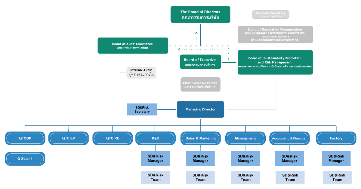 QTC Energy Public Company Limited recognizes the importance of risk management across all dimensions—economic, environmental, social, and human rights. The company operates under the supervision of the Sustainability and Enterprise Risk Management Committee, the Audit Committee, and the Board of Directors to ensure alignment with the organization’s mission and vision of becoming a world-class company. This also helps build confidence among all stakeholders.