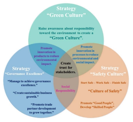 The Company has established the Corporate Sustainability Promotion Committee composed of department managers of various work sections. The Committee is authorized to monitor performance in line with policies and promote activities corresponding with the sustainable management framework and the sustainability equation, “Q+R=S”. Determining the sustainability management framework is an important mechanism for driving internal management at the policy level and the management level in order to lead to practice and project operations in line with the specified framework. The Company will foster beliefs and build understanding for every employee in line with the sustainability equation that doing good work with quality, accuracy and responsibility will build satisfaction for all stakeholders, build strength and sustainability for employees and the organization. The Company has the following sustainability framework and equation: